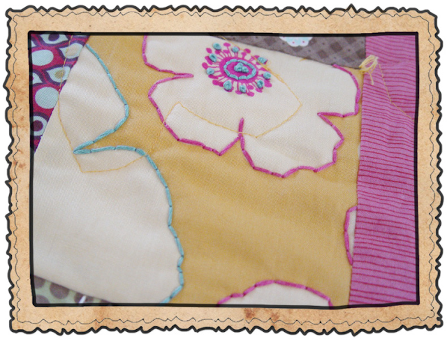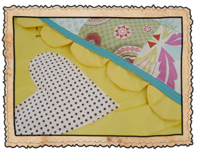 I finished it with a scalloped edge (yes, it took forever)..and added some hearts on the back and stitched them right on with my machine. (love the detail this adds on the front!)