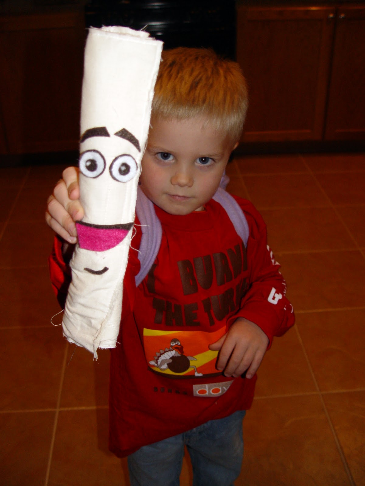Backpack was made from fleece and felt.