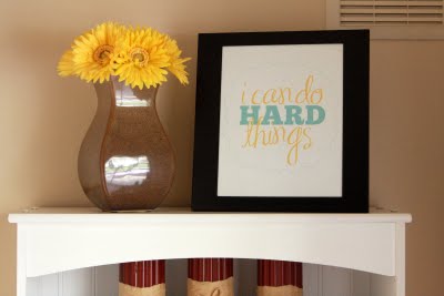 and it is GOOD to see that reminder in my home as the days are sometimes long and the struggles and trials I go through are difficult. (a little positive self-talk is ALWAYS helpful!):)