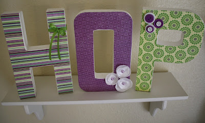 I cut out and decoupaged some pretty scrapbooking paper on the fronts of all the letters.