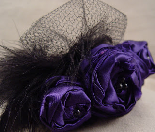 This purple flower headband was really fun to make. To make a fabric flower like this..check out this tutorial..one of the best I have seen. I finished by adding feathers (love how they sort of curl downward) and added in some netting at the end!
